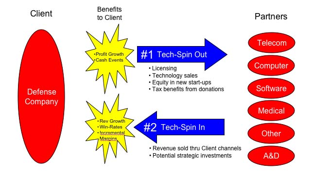 Aero/Defense Firms - Spin-In and Spin-Out - Challenges of Spin-In- Ways to Source Tech- How Spin-In Works- Spin-In Roles/Benefits- Unique Qualifications - Challenge of Spin-Out- Internal Effort Shortfalls- What Tech-Spin Brings- Client Benefits- Our Approach- Why Outsource?